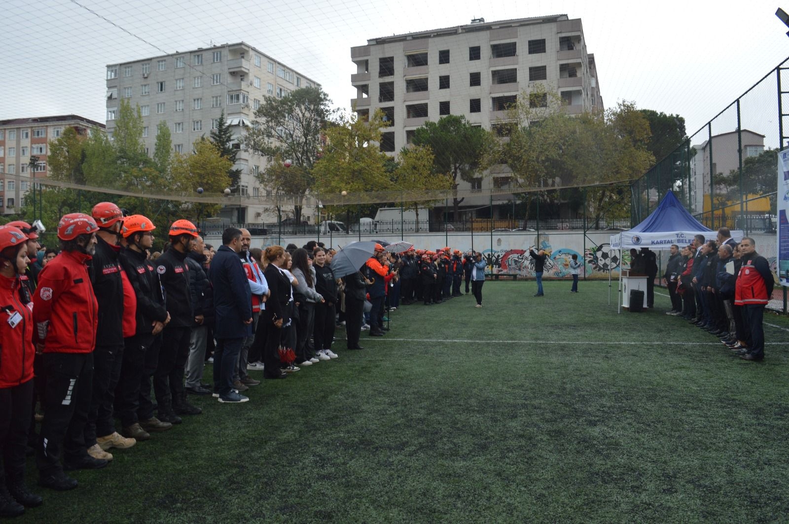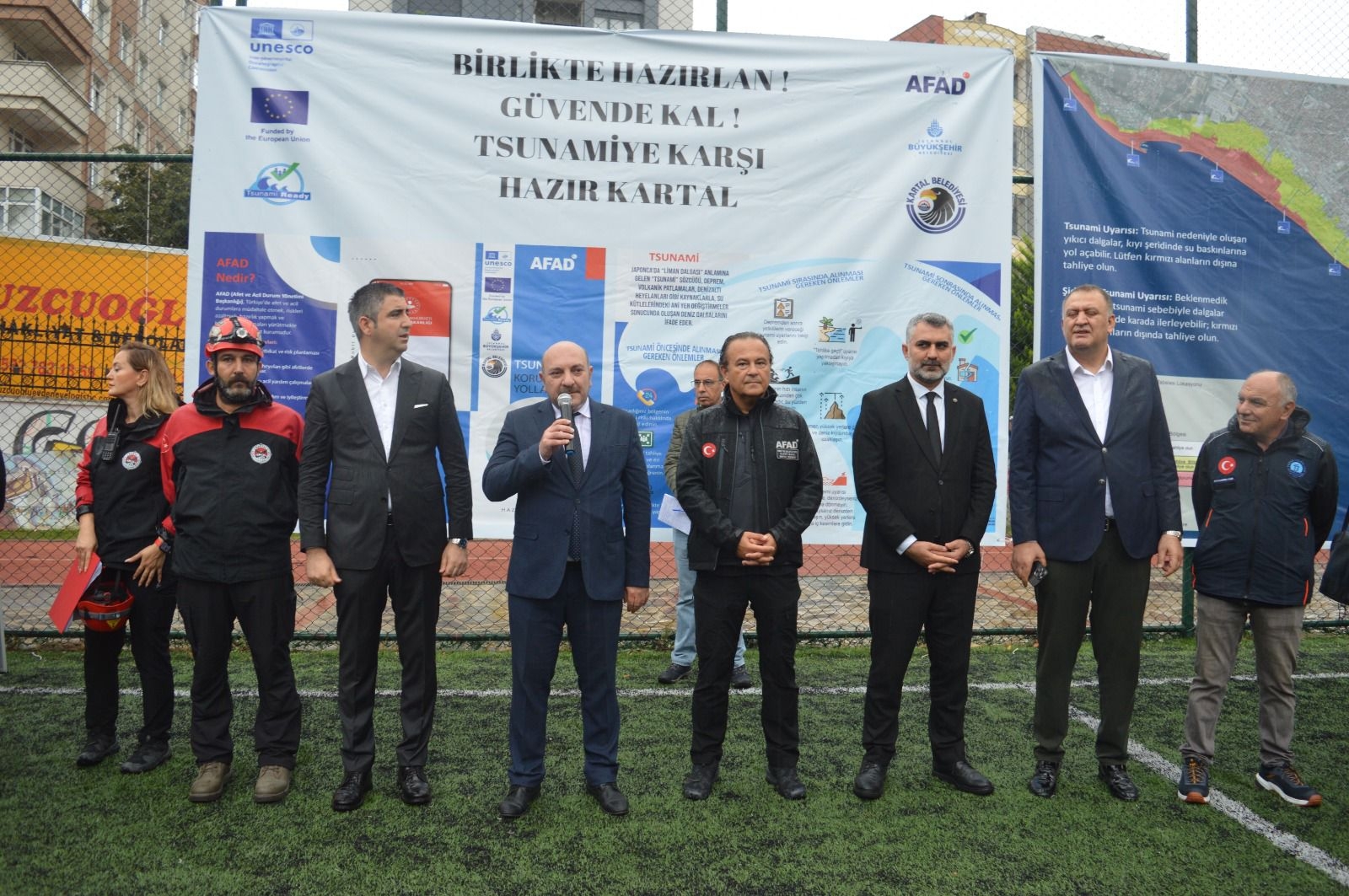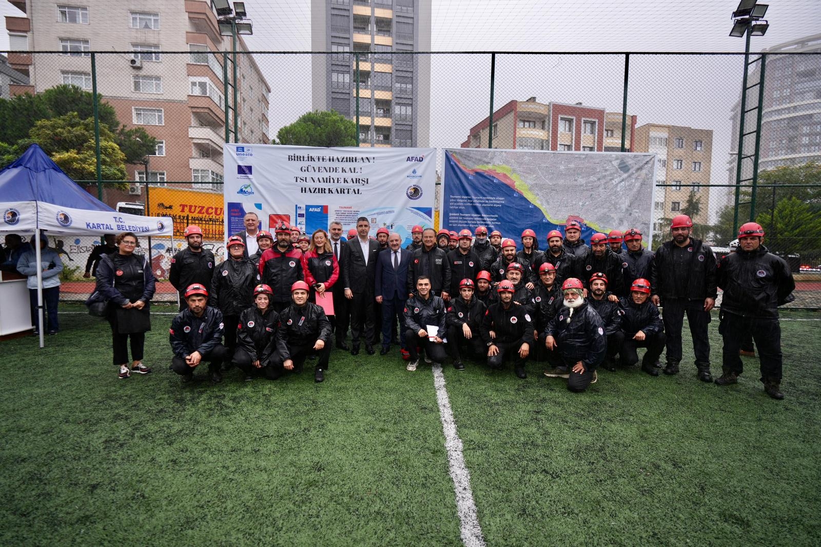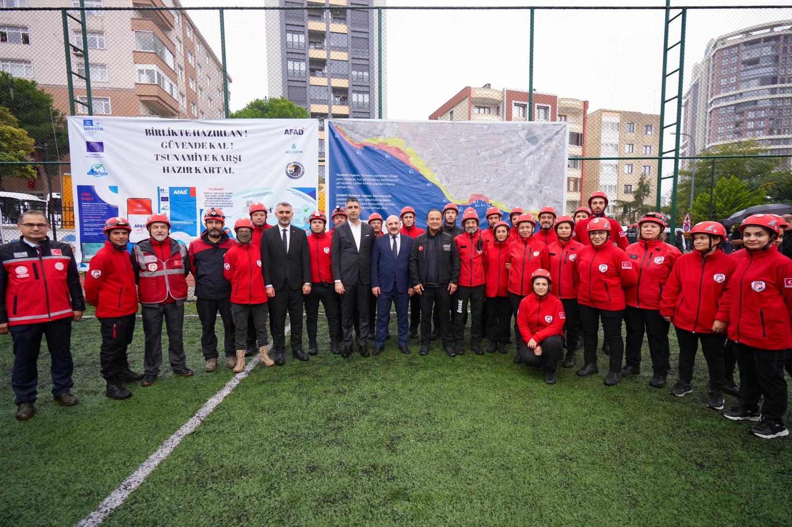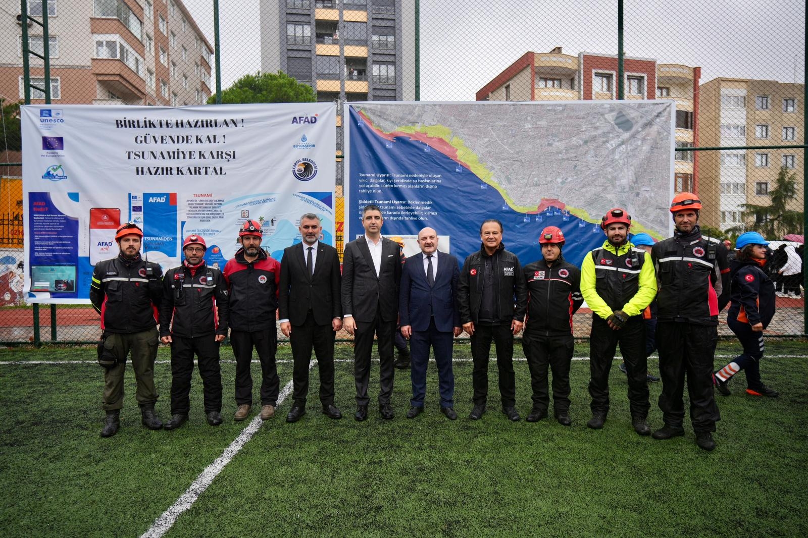 Tsunami farkındalığını artırmaya yönelik eğitim ve tatbikat düzenlendi. Hüseyin Saim Ekim Ortaokulu'nda gerçekleştirilen programda öğrencilere tsunami tehlikesi, korunma yöntemleri ve afet anında yapılması gerekenler hakkında bilgilendirme yapıldı. Eğitimin ardından okul çevresinde uygulamalı Tsunami Tatbikatı gerçekleştirildi. Tatbikata; Kartal Kaymakamı Sayın Edip Çakıcı, Kartal Belediye Başkanı Gökhan Yüksel, İlçe Milli Eğitim Müdürümüz Mustafa Kıraç, İstanbul İl Afet ve Acil Durum Müdürü Prof. Dr. Haluk Özener, arama kurtarma ekipleri ve çeşitli sivil toplum kuruluşları katıldı. Etkinlikte konuşan yetkililer, tsunami gibi deniz kaynaklı afetlere karşı toplumun bilinçlendirilmesinin hayati önem taşıdığına dikkat çekerek, benzer farkındalık çalışmalarının önümüzdeki dönemde de süreceğini ifade etti.
